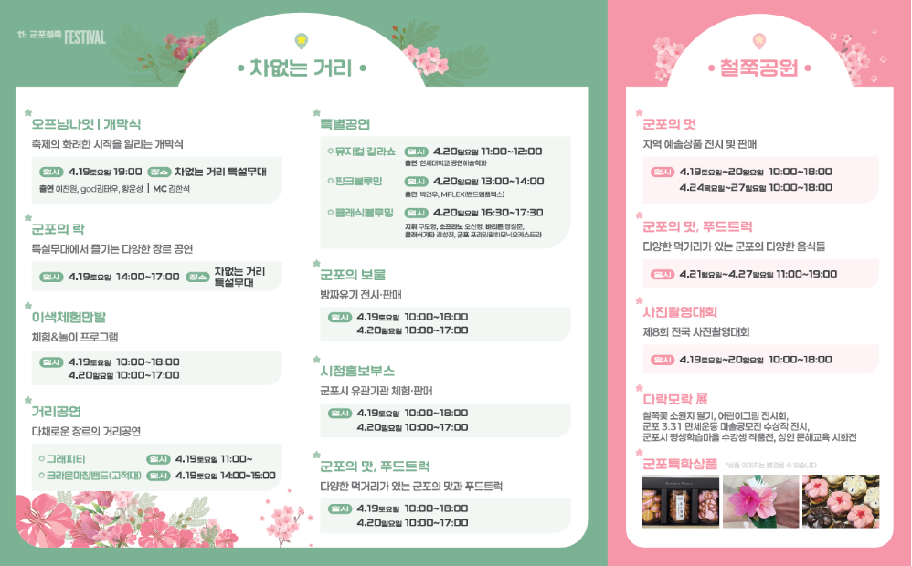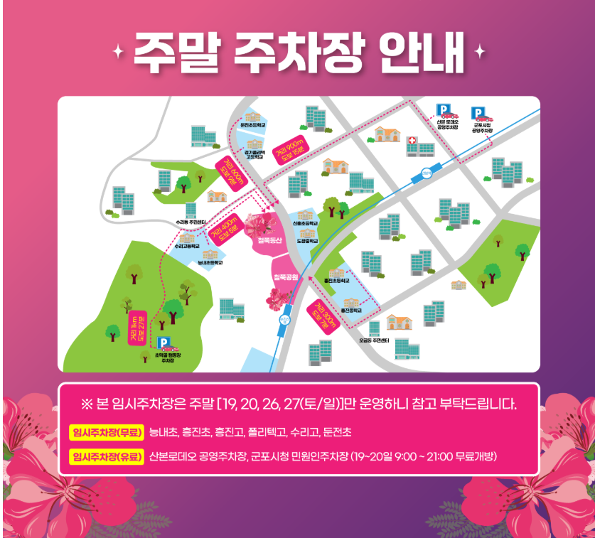 장소: 경기도 군포시 철쭉동산(군포시 산본동 1152-14), 철쭉공원(군포시 번영로 407), 차없는거리 일대