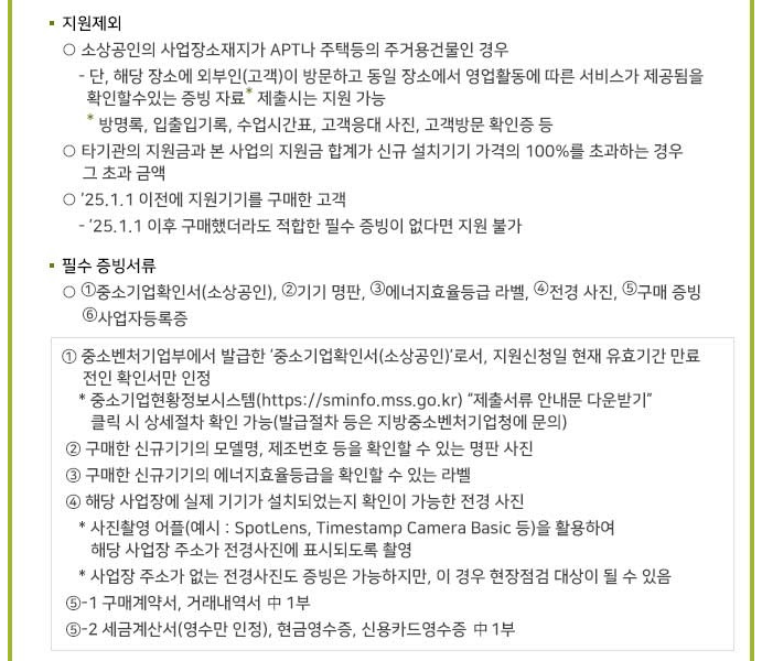 2025년 소상공인 고효율기기 지원사업 신청시 제출 서류